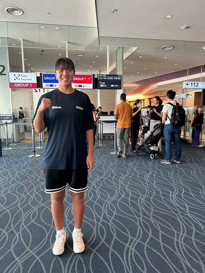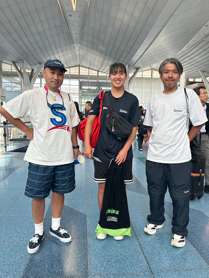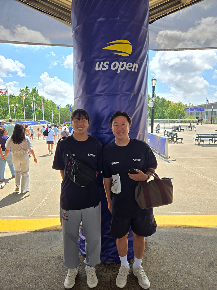 その後羽田空港からニューヨークへ出発。JFK空港到着後には大会会場を視察し、四大大会ならではの熱気を体感。現地で前乗りしていた富澤選手とも合流し、いよいよ予選に向けた調整が始まります。