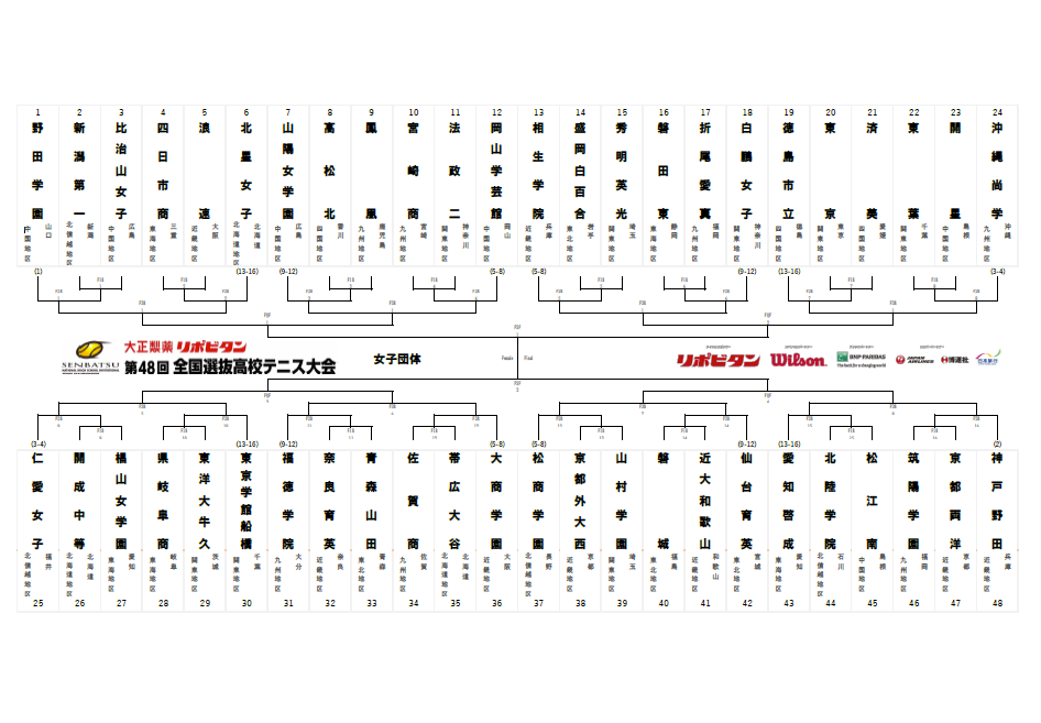 第48回全国選抜高校テニス大会 女子団体戦 組合せ