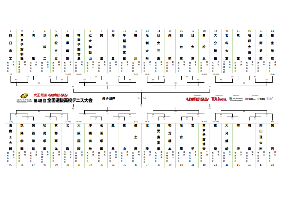 第48回全国選抜高校テニス大会 男子団体戦 組合せ