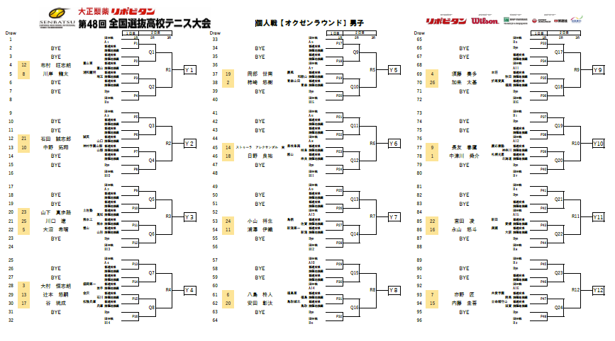 第48回全国選抜高校テニス大会 男子個人戦 組合せ
