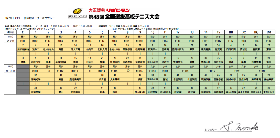 【出場校の皆様へ】3月21日(第1日目)のオーダーオブプレー発表