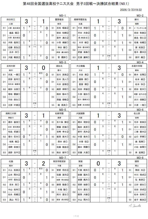 3/23男子団体結果詳細