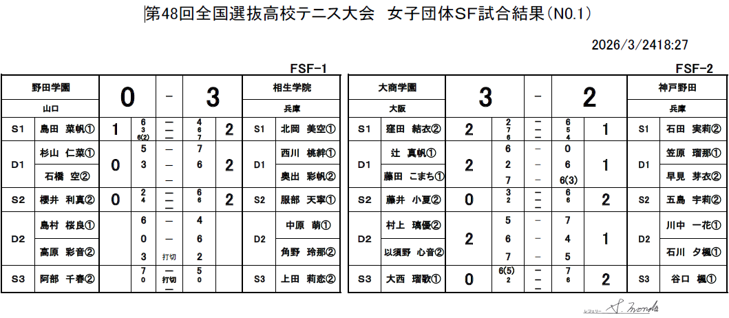 3/24女子団体結果詳細